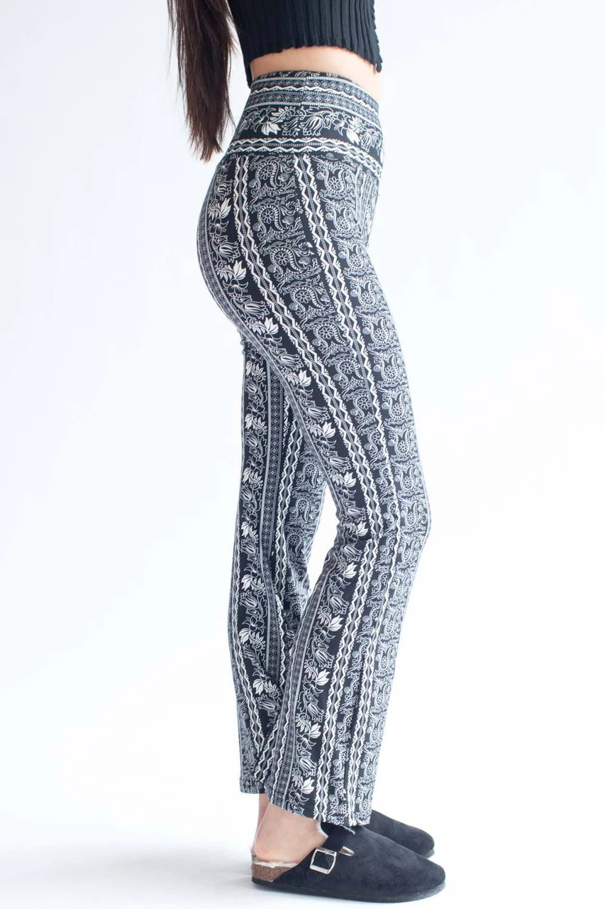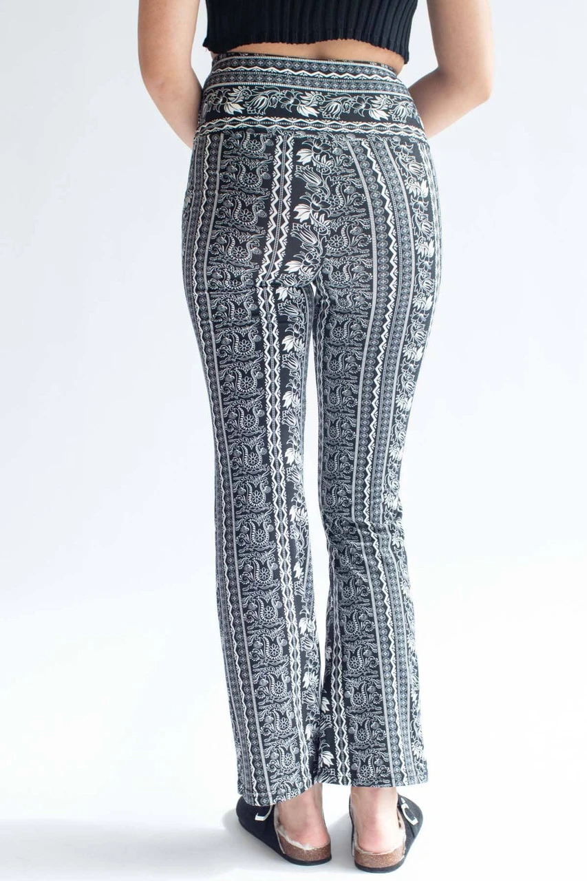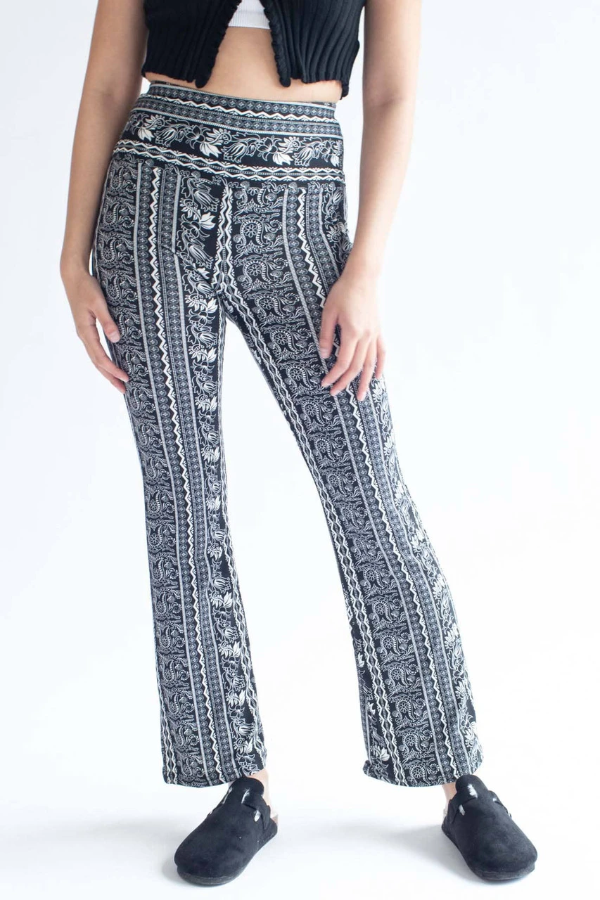 Black Floral Border Print Bell Bottoms