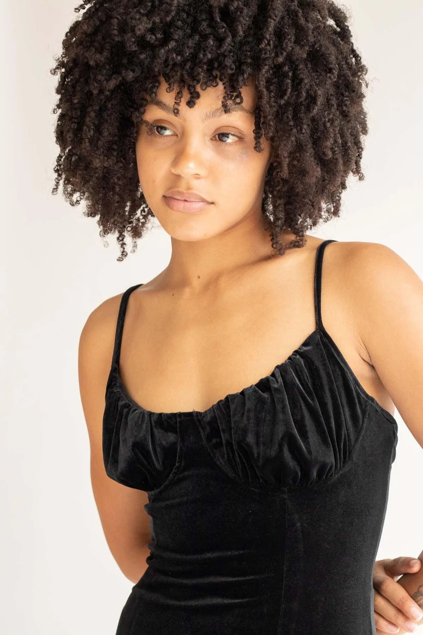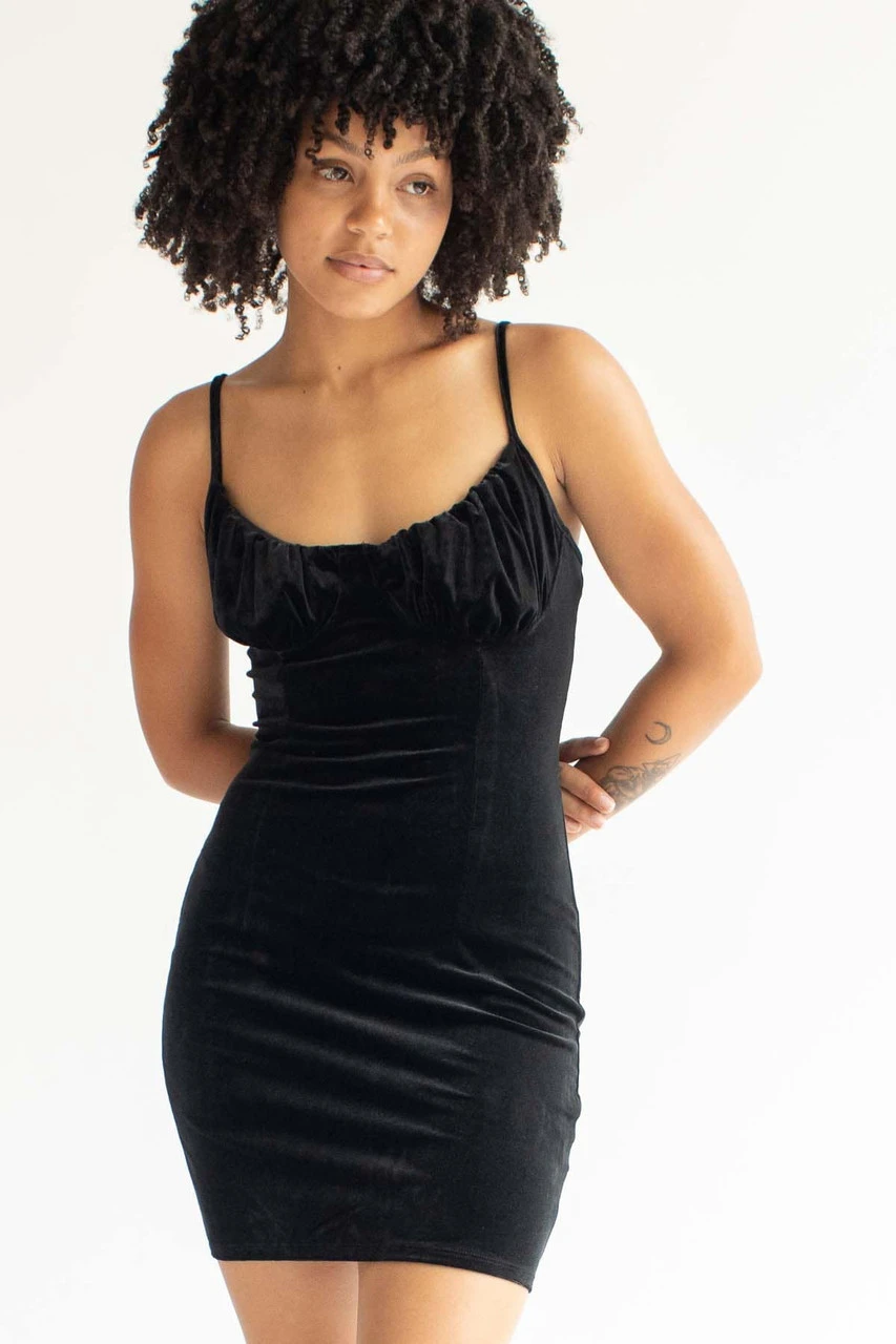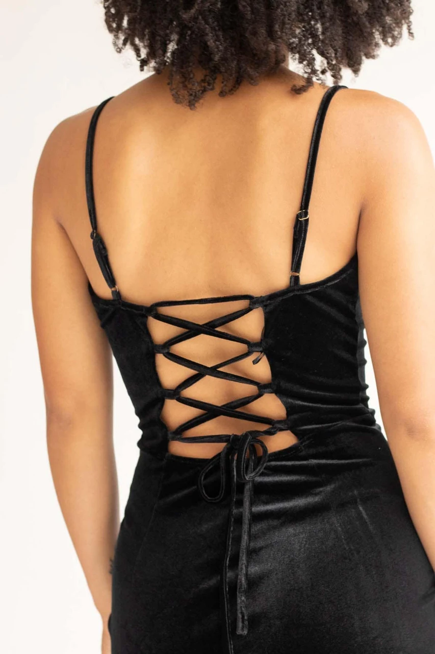 Black Lace Up Back Velvet Mini Dress