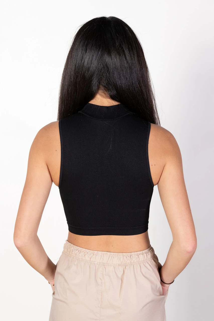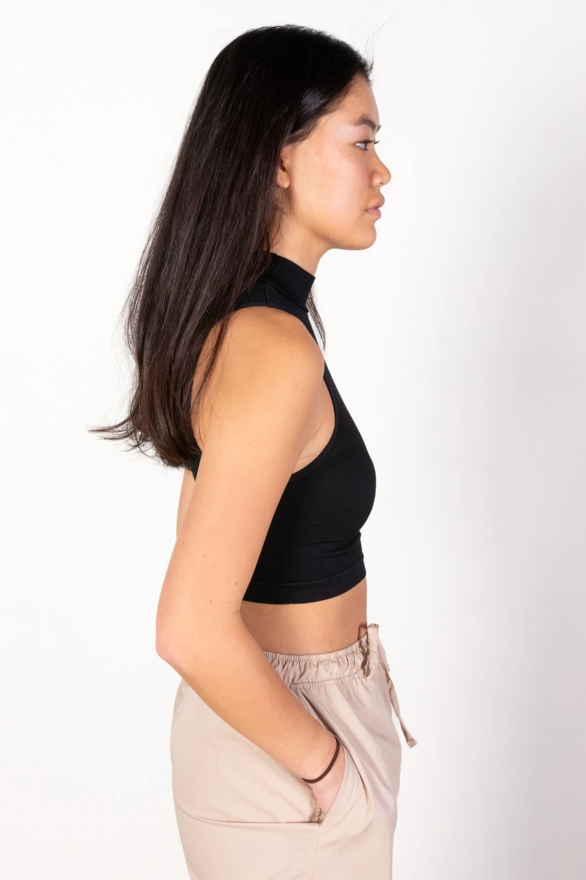 Black Mock Neck Crop Tank