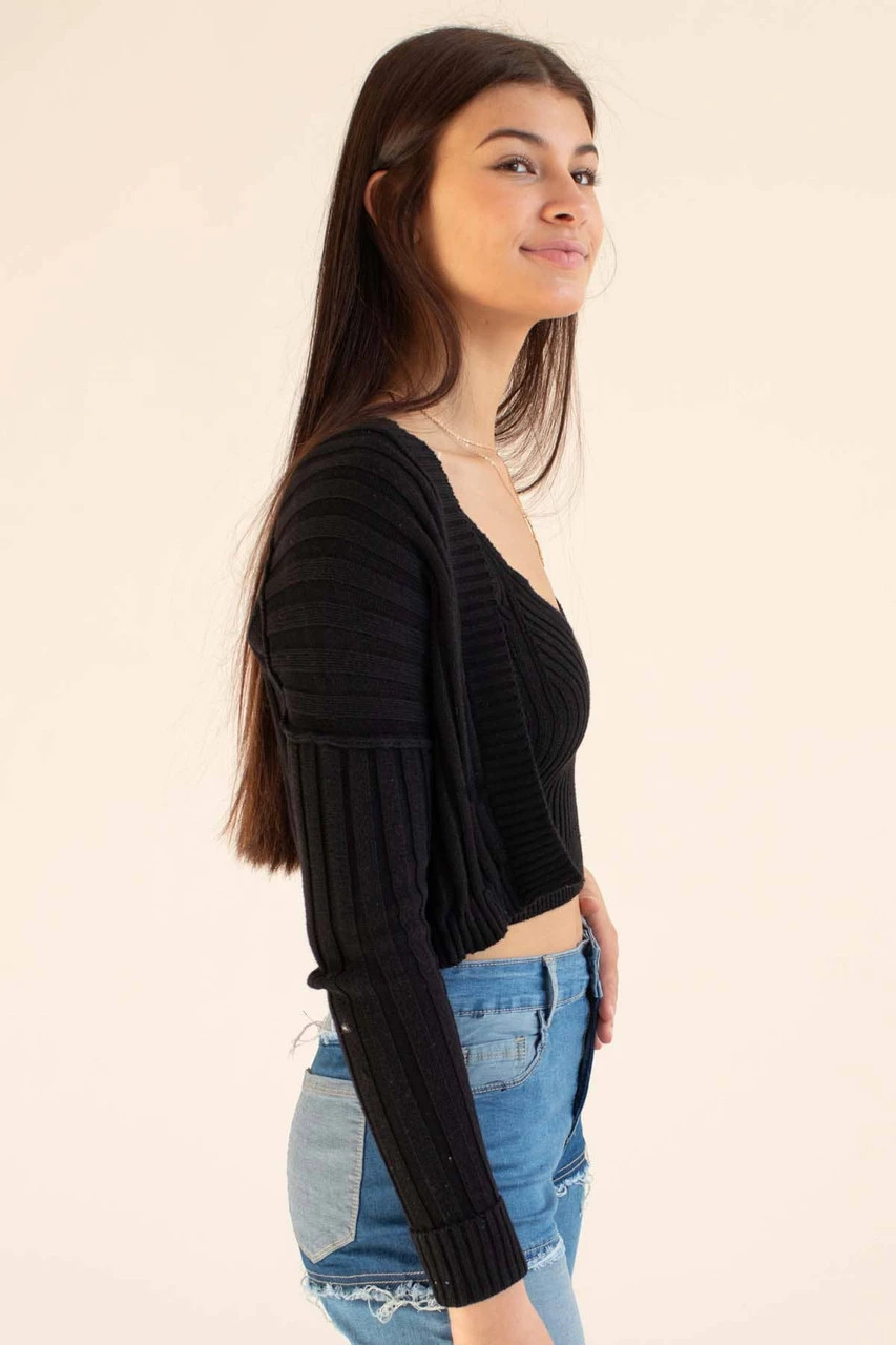 Black Ribbed Cardigan & Tank Set