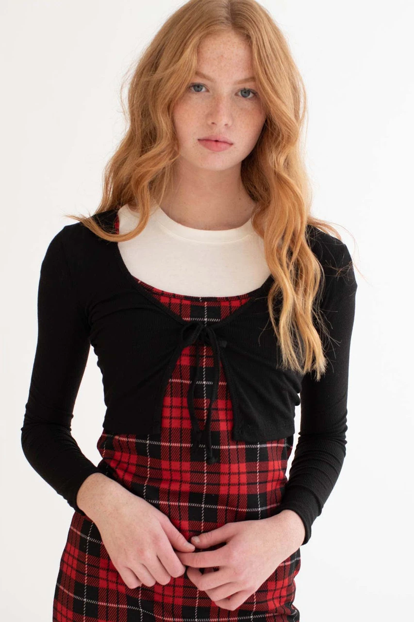 Black Ribbed Tie Bust Cardigan 1