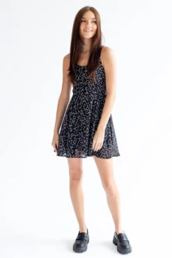 Black Snap Front Ribbed Mini Dress