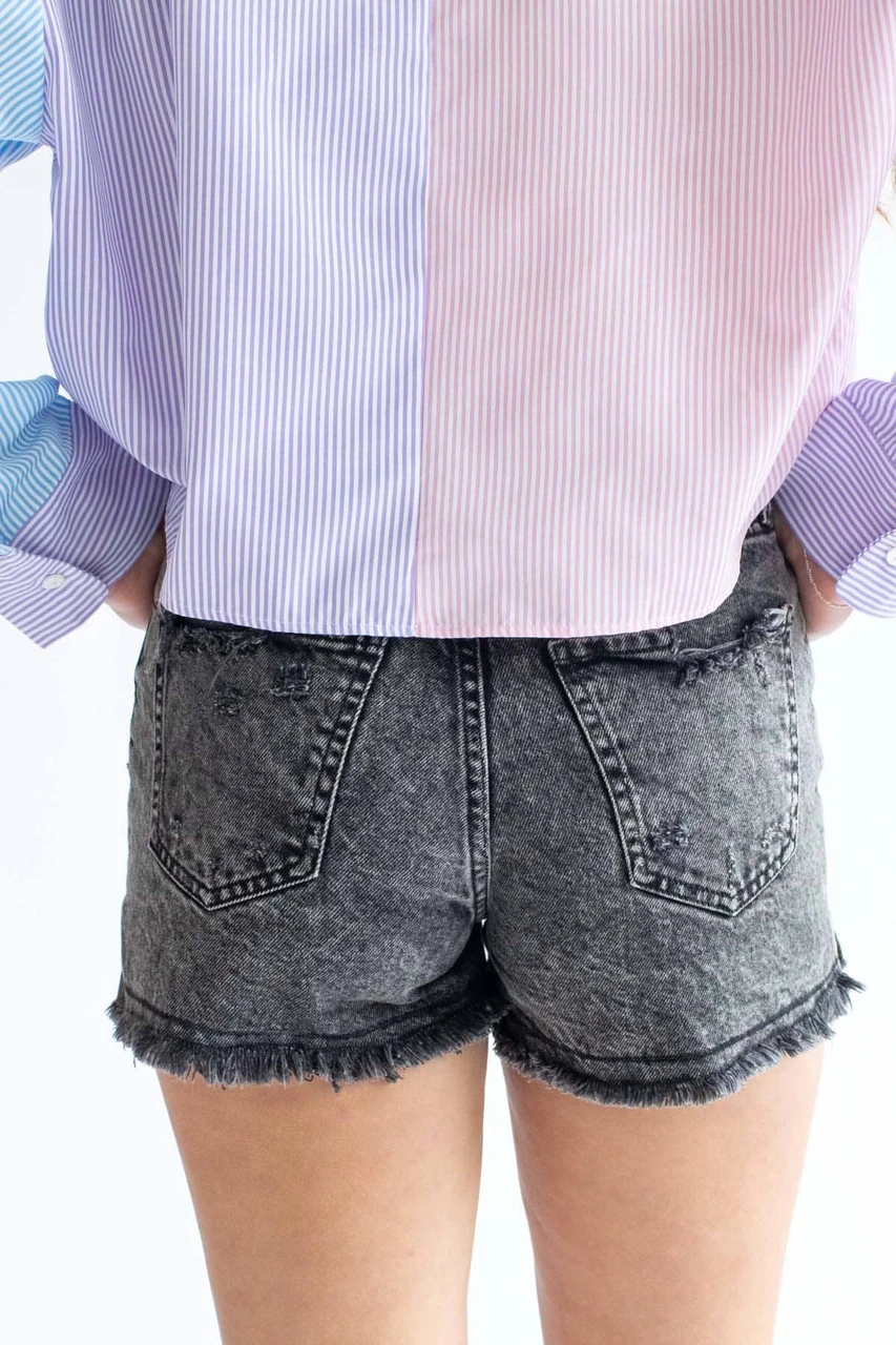 Black Washed High Rise Frayed Denim Shorts