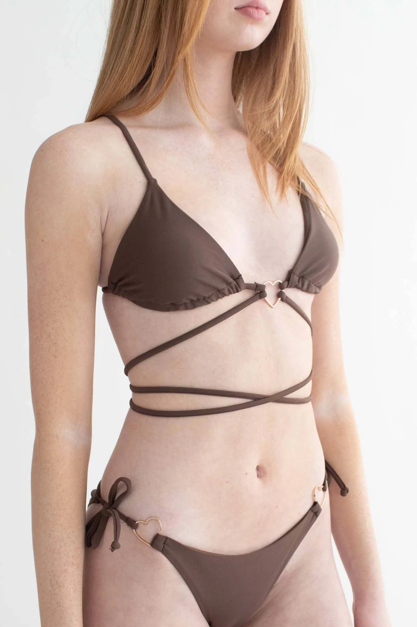 Brown Heart Front Strappy Bikini Top