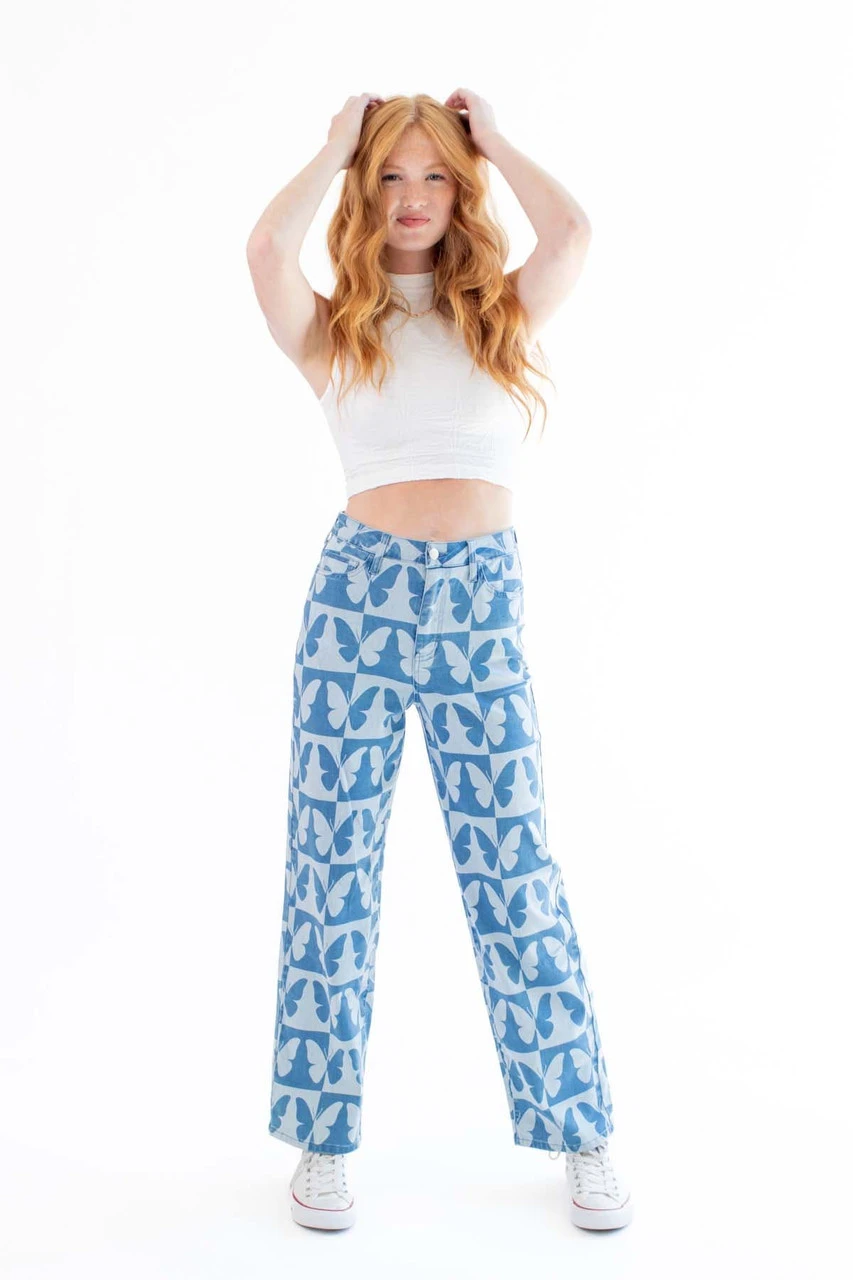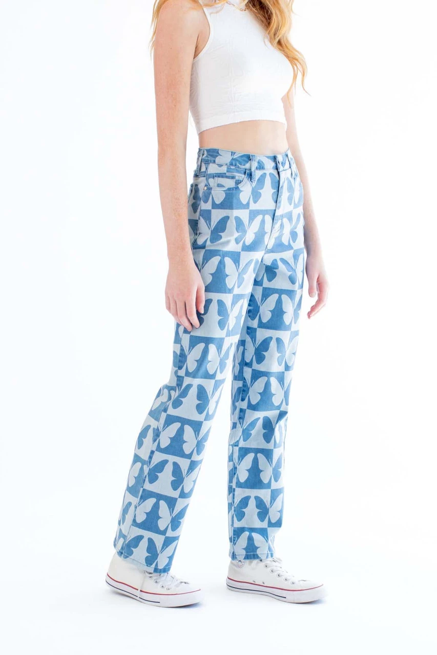 Checkered Butterfly Print Jeans