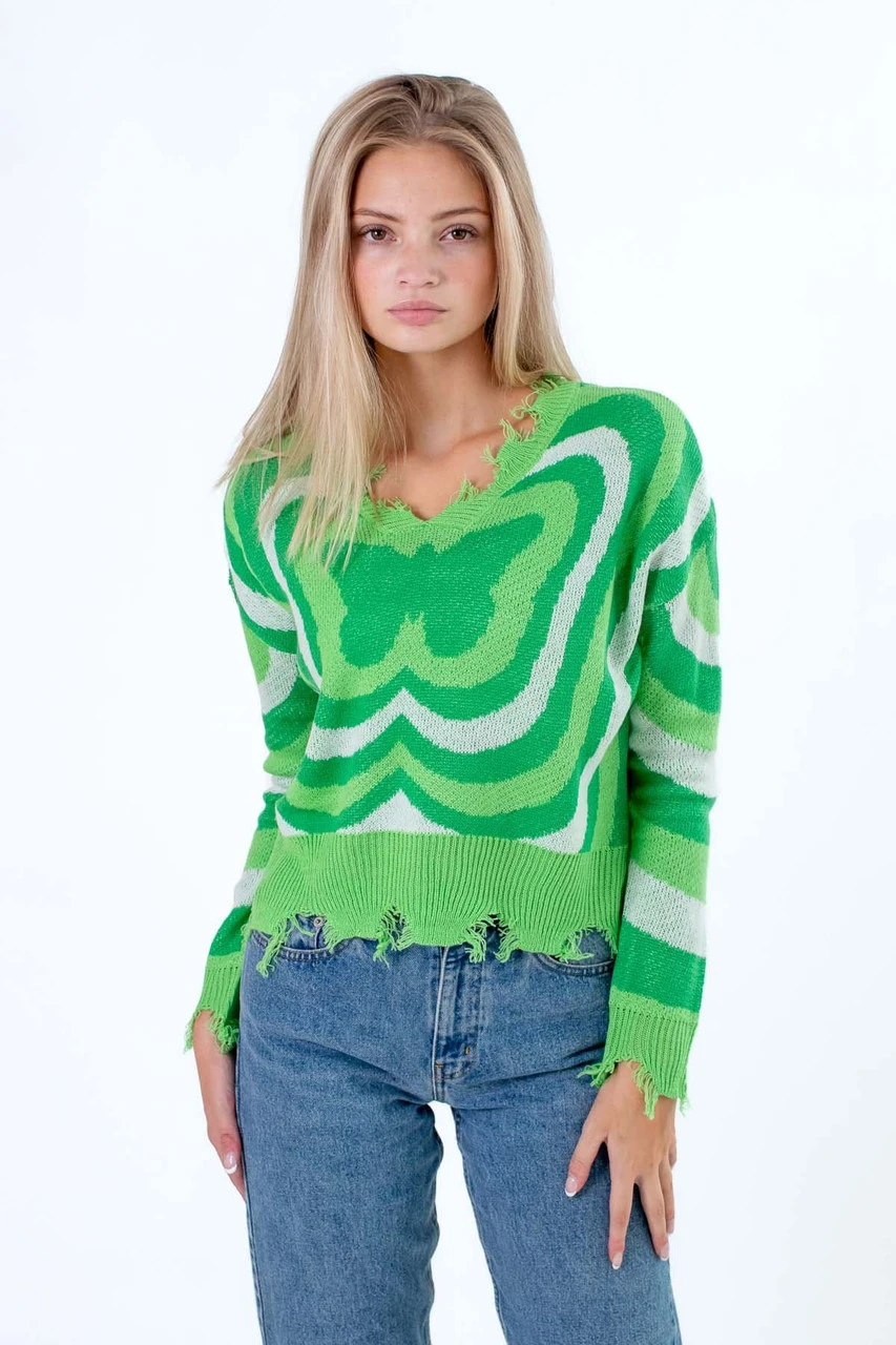Green Psychedelic Flower Sweater