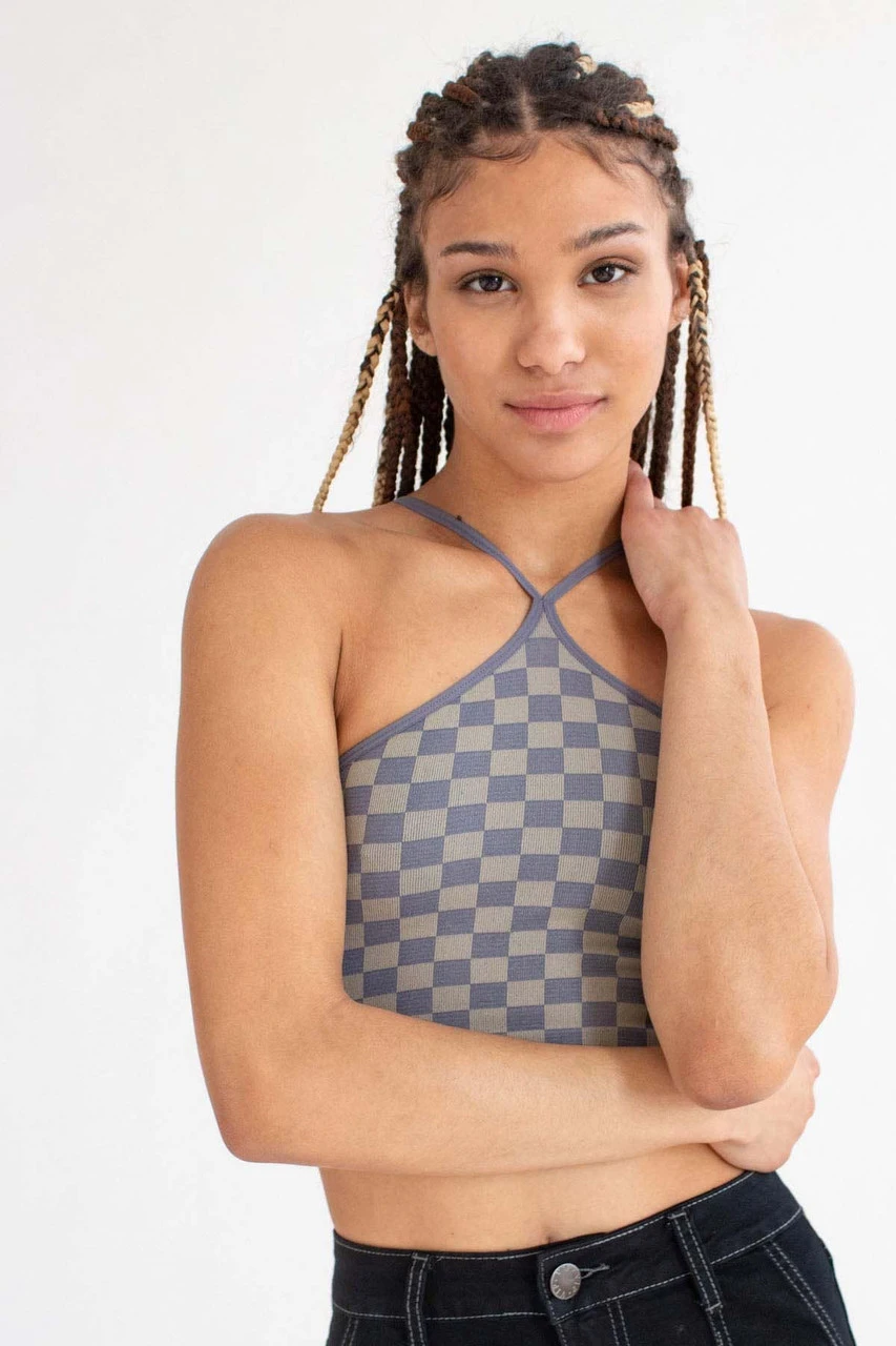 Hazy Blue Checkered Seamless Y Neck Crop Cami