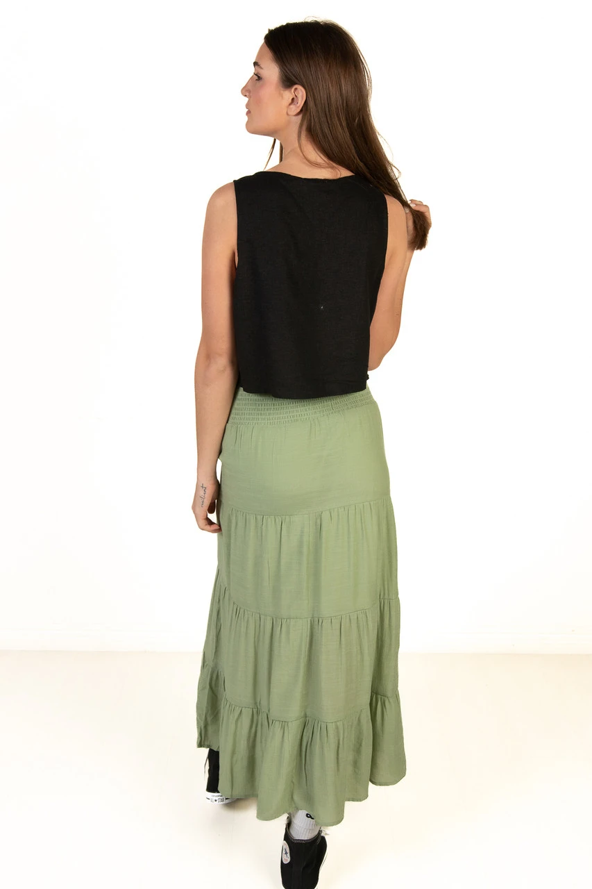 Moss Green Smocked Waist Maxi Skirt