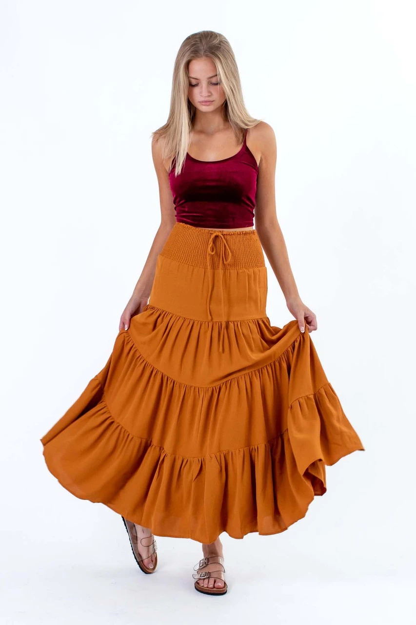Mustard Smocked Waist Maxi Skirt