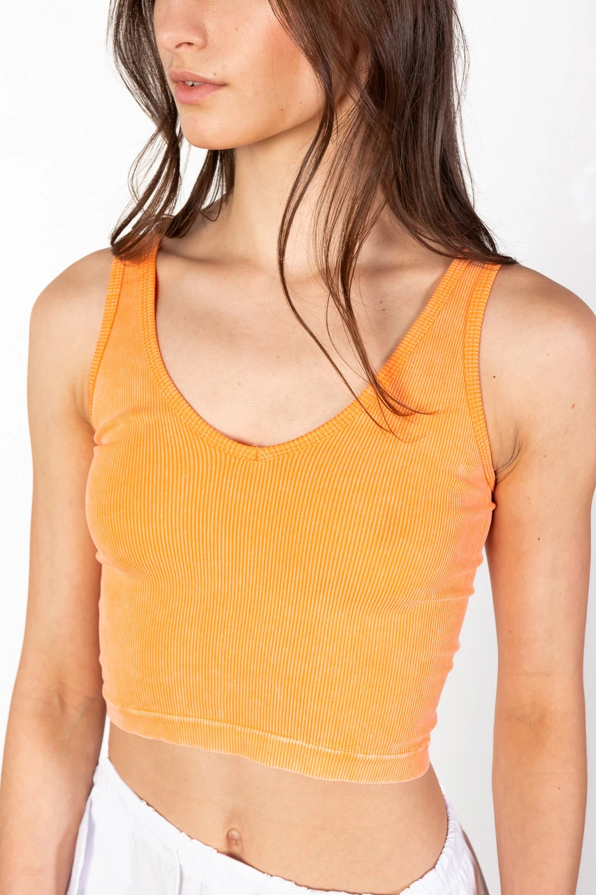 Orange Mineral Wash Ribbed Tank