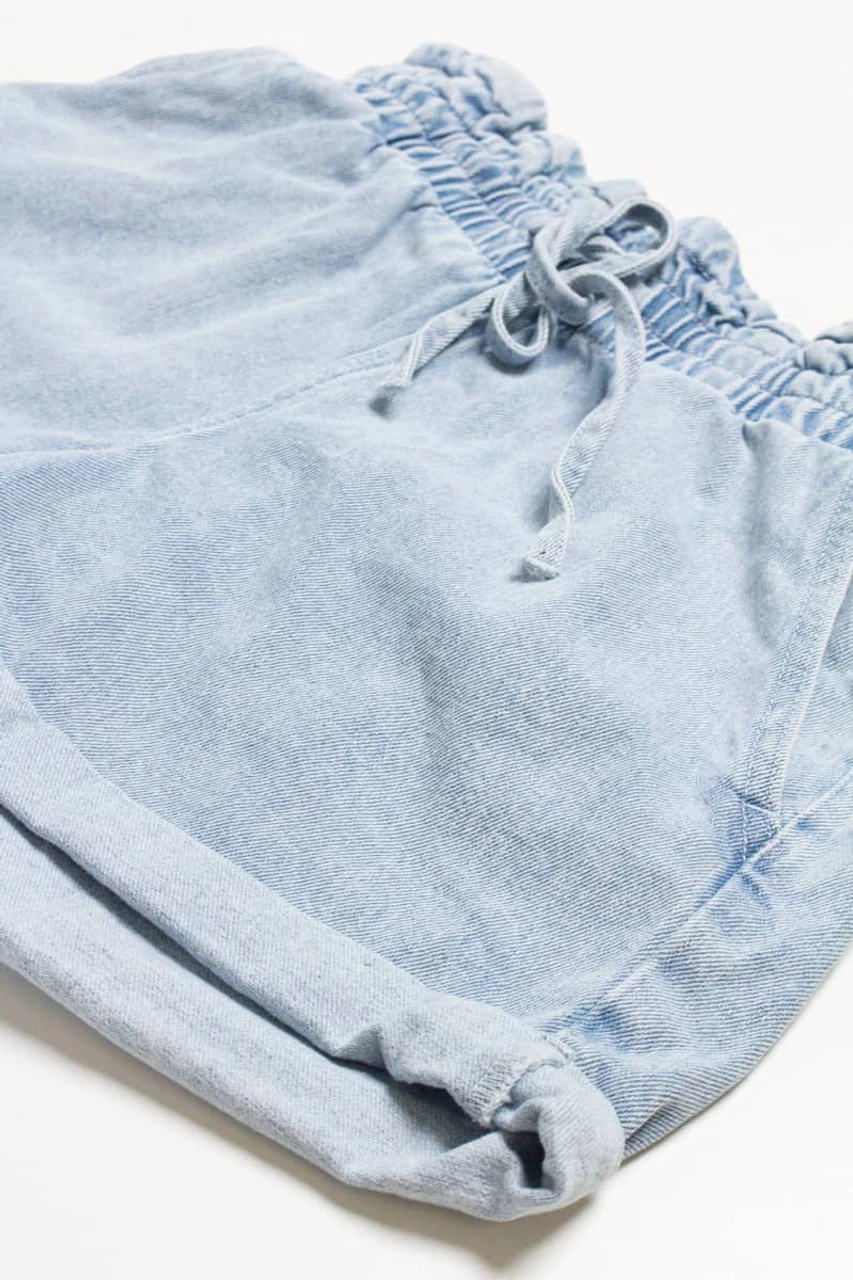 Paper Bag Drawstring Waist Denim Shorts