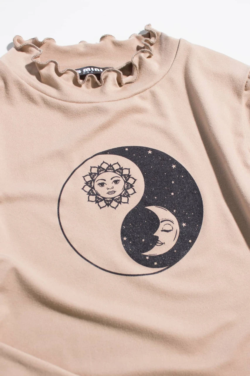Taupe Celestial Yin Yang Long Sleeve Top