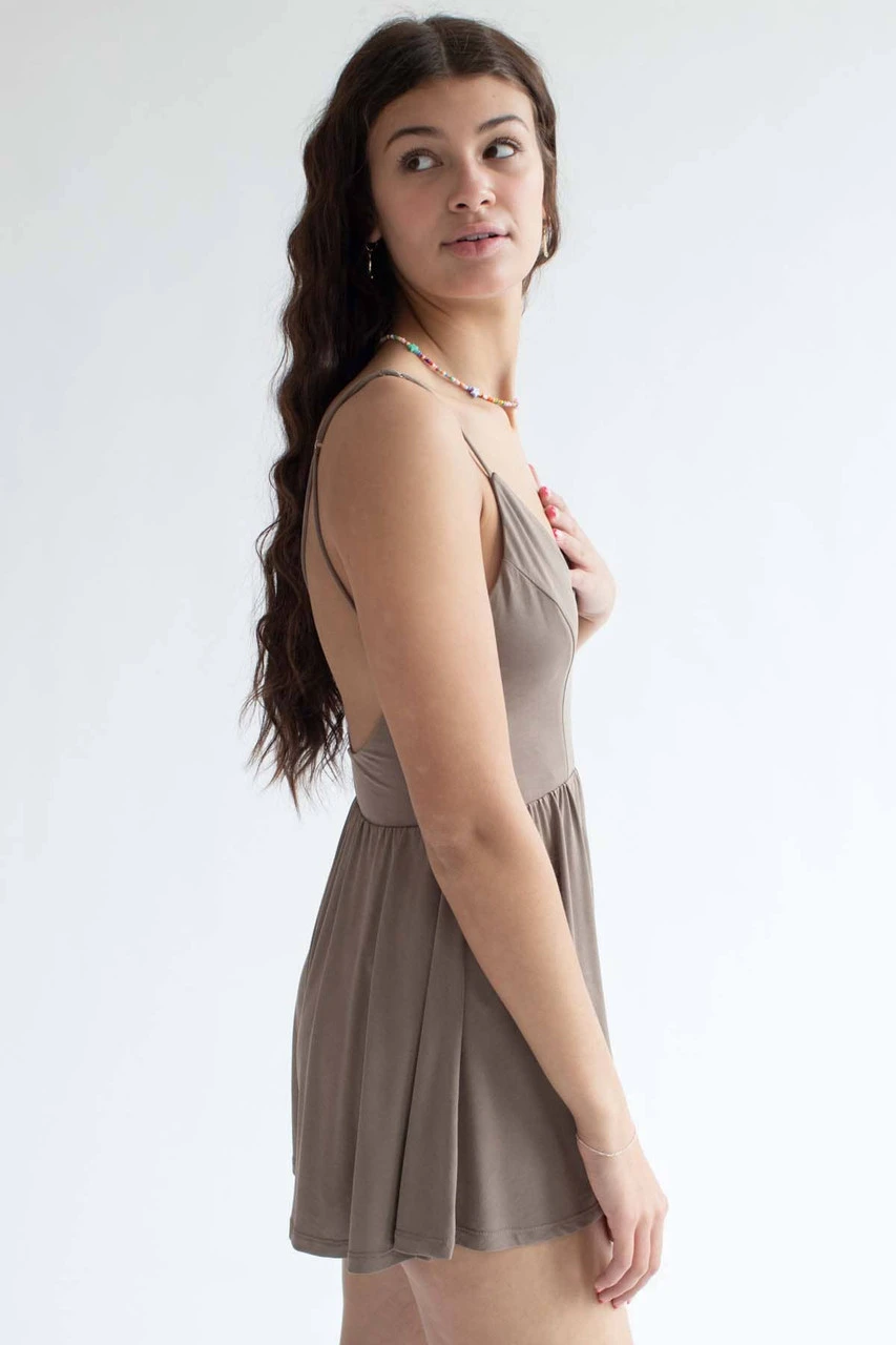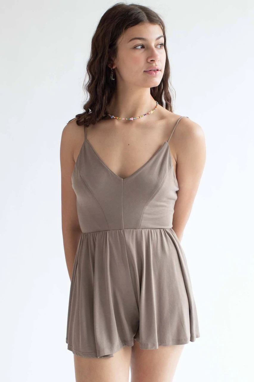 Taupe V Neck Cami Romper
