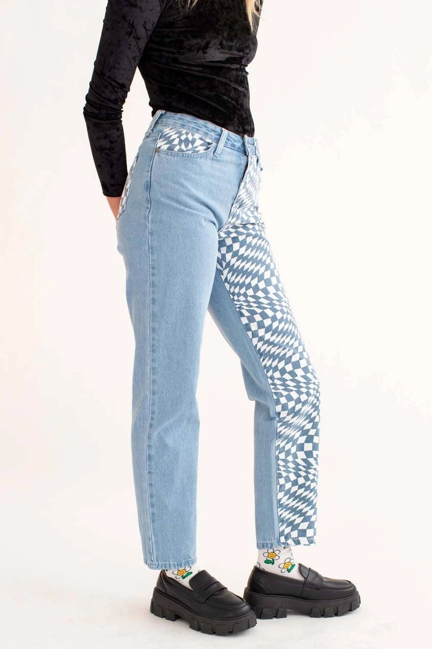 Trippy Checkered Leg Jeans