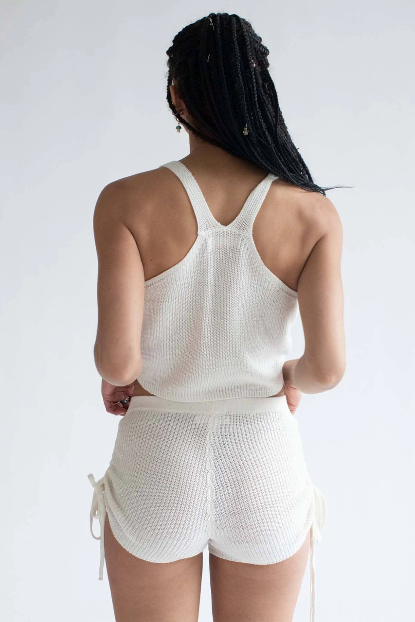 White Cinched Knit Cami & Shorts Set